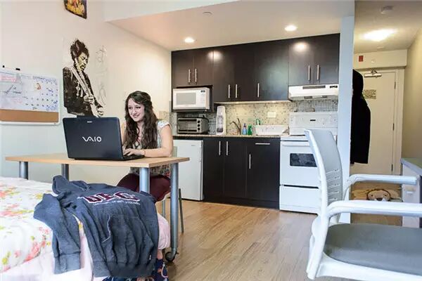 Downtown Campus本科生宿舍分成hotel-style(酒店式)、dorm-style(普通宿舍式)和apartment-style(公寓式)。研究生宿舍分成单间和公寓,生活更方便一些。
