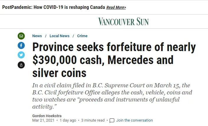 没收的现金共计386,362加元,是警方在温哥华、素里、本拿比和维多利亚等多地搜查到的“赃款”。卑诗省充公办公室表示,被告使用车辆、金钱、银器和手表从事非法活动交易。根据卑诗省法院文件显示,暂时被告人还未对此有任何回应,关于民事诉状中所述的刑事指控活动也尚不确定是否已经立案。