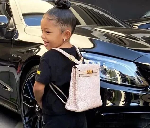 很多人梦寐以求的粉红色爱马仕 Kelly Pochette,Stormi早就拎着出镜了。