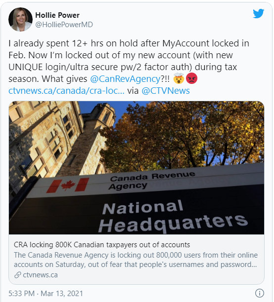 此前,有近80万名加拿大人的CRA账户因为安全问题被封锁,Chezepock只是其中之一