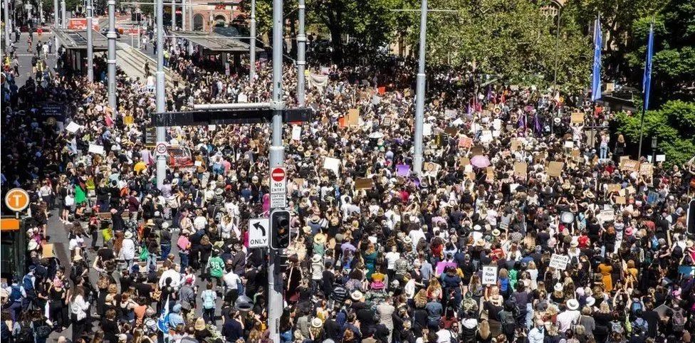 3月15日,堪培拉、悉尼、墨尔本等40多个城市,都发生了大规模抗议活动。活动大约有11万人参加,是澳大利亚有史以来最大的女性游行。