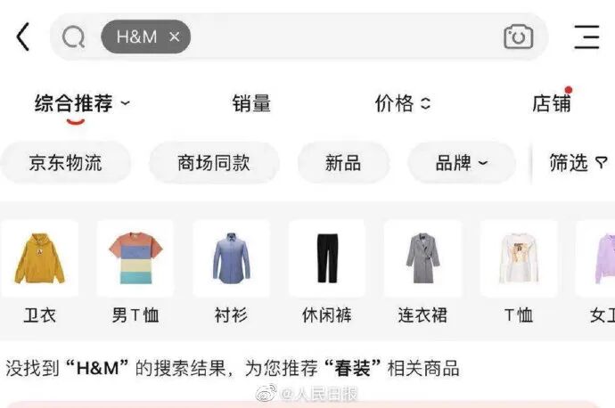 截至目前,下架H&M的电商平台包括:京东、天猫、淘宝、拼多多、唯品会等。