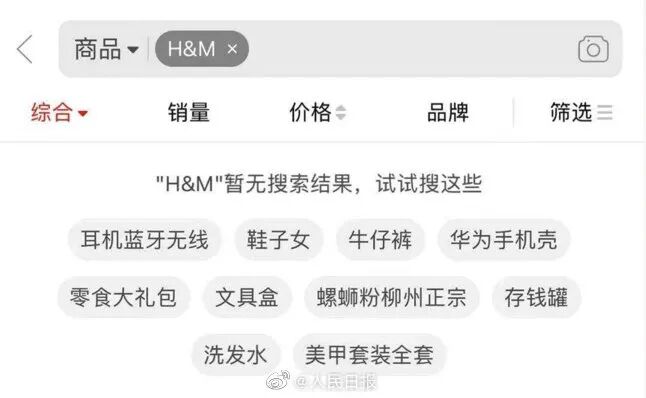 随着事件不断发酵,记者发现,国内主流电商平台淘宝、天猫、京东、拼多多、唯品会已无法检索到和“HM”以及“H&M”相关的信息,天猫页面提示产品或已下架。