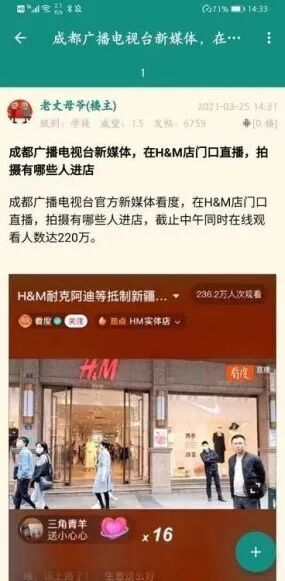 还有的媒体在H&M、耐克中国门店外开起了直播……