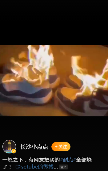 还有人上传了焚烧耐克鞋的视频。