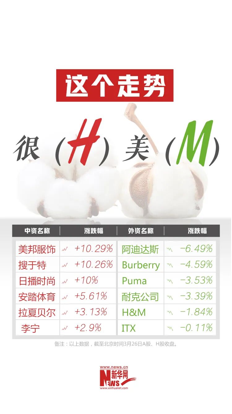 日前,H&M、耐克、阿迪达斯、Burberry等跨国企业发布抵制新疆棉花的抹黑行为引发众怒,微博热搜榜更是被此话题霸屏。中国消费者纷纷力挺新疆棉花和国货。