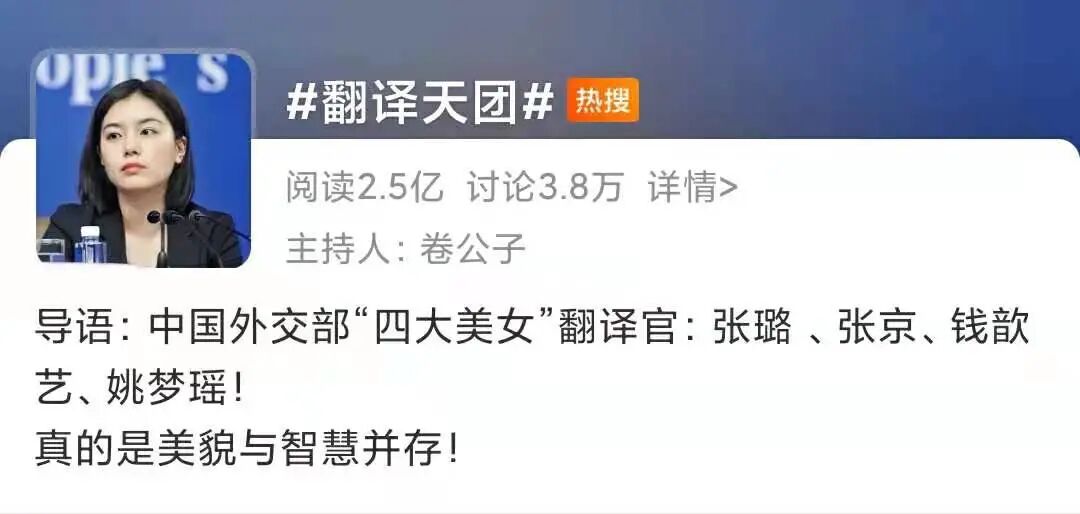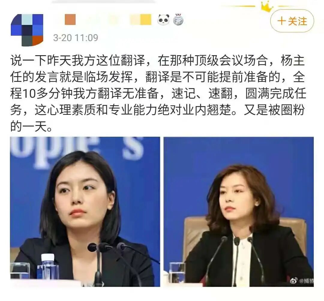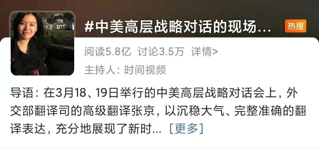 第二天,#中美高层战略对话的现场翻译是她#的话题就登上了热搜。
