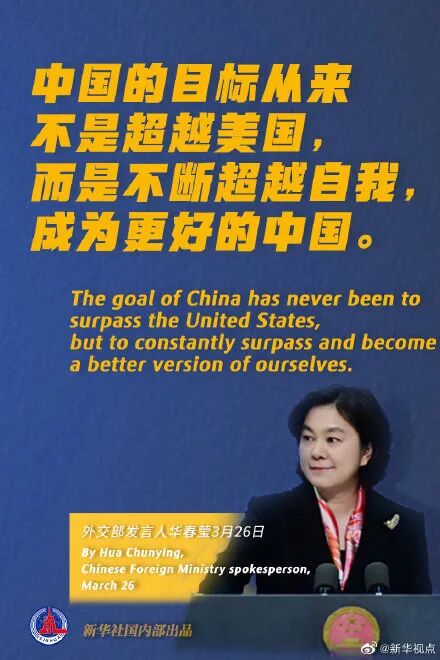 在今天的外交部例行记者会上,回应拜登所谓的涉华声明:中国的目标从来不是超越美国,而是不断超越自我,成为更好的中国。