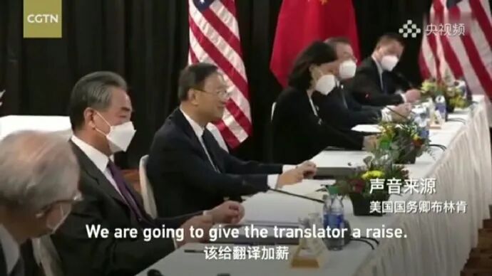 就连现场的美国国务卿布林肯都说:“We are going to give the translator a raise.”(我们应该给翻译加薪。)