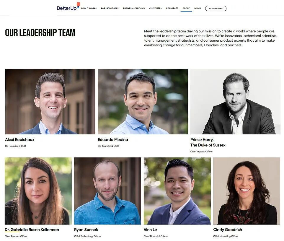 哈里王子工作的这家科技公司BetterUp成立于2013年,在全球66个国家地区有约2000名导师,与像Facebook, Google, NASA这样的著名企业机构合作,给员工们提供心理和身体健康指导服务。