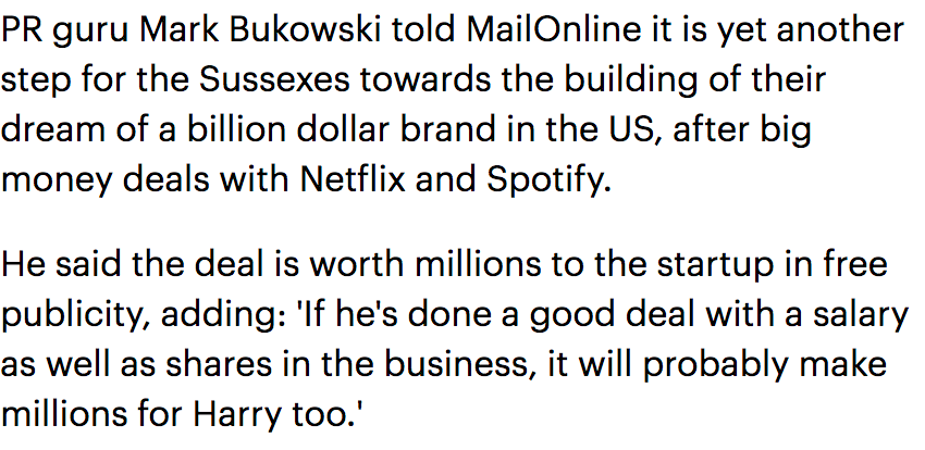 那边厢公爵夫妇俩既和流媒体巨头Netflix签订约7,500万英镑的协议来制作节目,又和著名播客平台Spotify达成估计为1800万英镑的长期合作协议;这边厢又是卖惨哭穷,痛斥王室切断经济来源,可想而知这俩人引起了多大的争议。