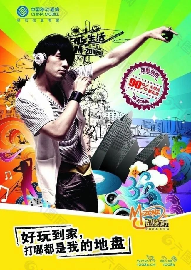 2003年,中国移动牵手周杰伦,推出了针对年轻人的“动感地带(M-zone)”。那时的年轻学生几乎人手一份2G套餐,哼着《我的地盘》漫步在街头巷尾。