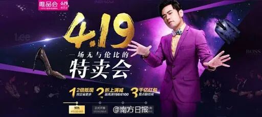 2016年,他穿着一身亮眼的粉色西装为唯品会代言,电商这块曾经杀死美邦的蛋糕,他依然分得了一块;