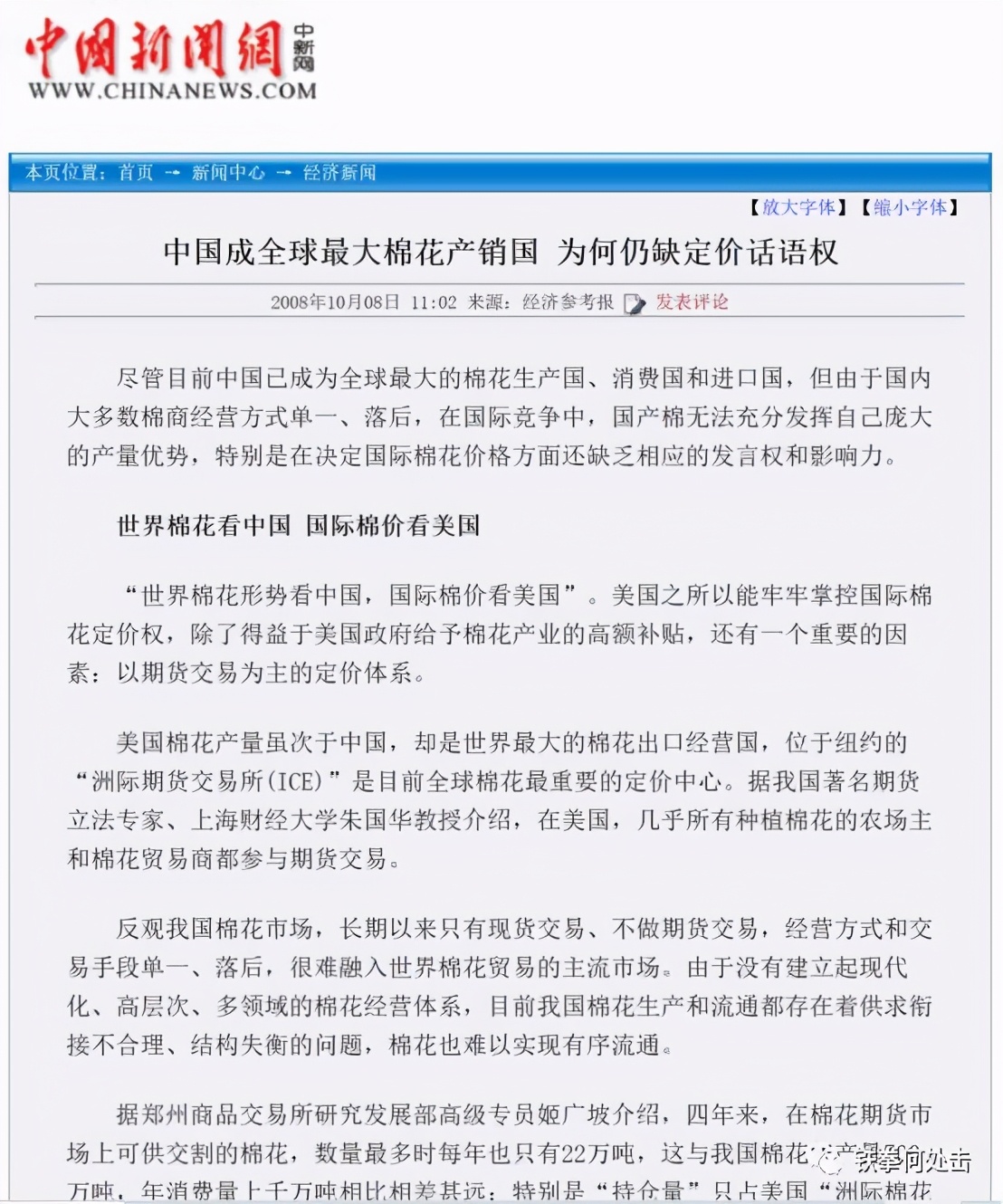 发展才是硬道理。没过几年,从棉花上游生产,中间的纺织加工,再到下游消费,中国顺利通关了棉花产业链。这时候,主导定价权便被提上了议程。