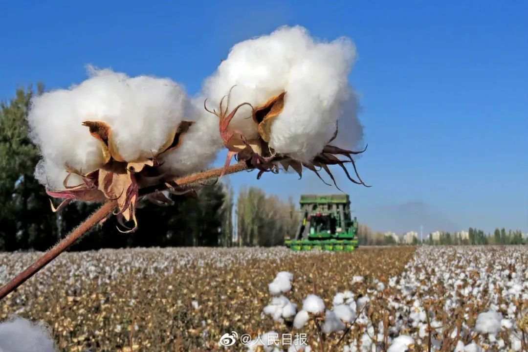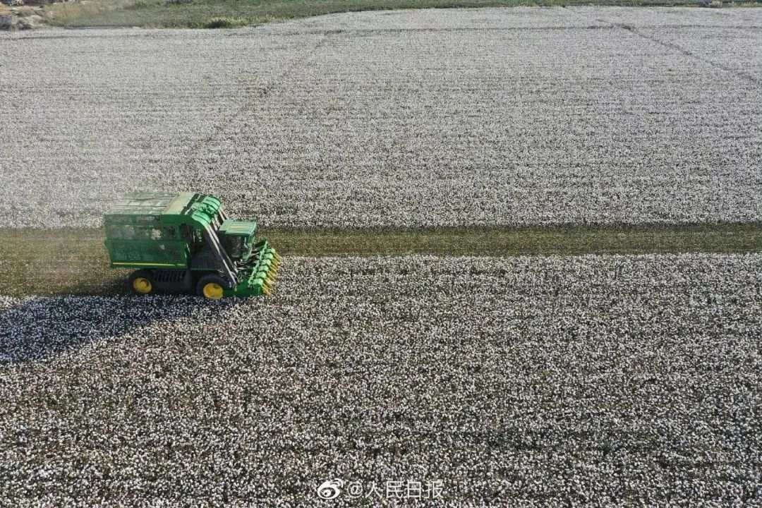 新疆棉花机械化采收 图片来源:微博@人民日报