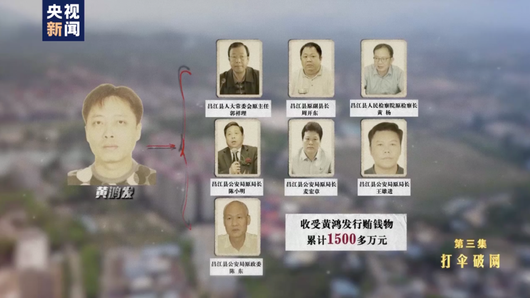 3月28日,大型政论专题片《扫黑除恶——为了国泰民安》第三集《打伞破网》在中央广播电视总台央视综合频道播出。片中讲述了实施违法犯罪多达58起,公然作恶30年却能逍遥法外的海南昌江黄鸿发特大涉黑案。