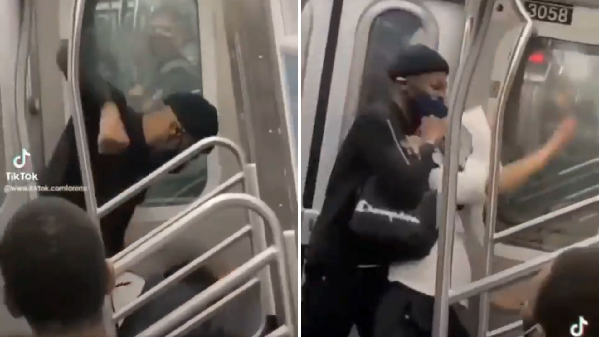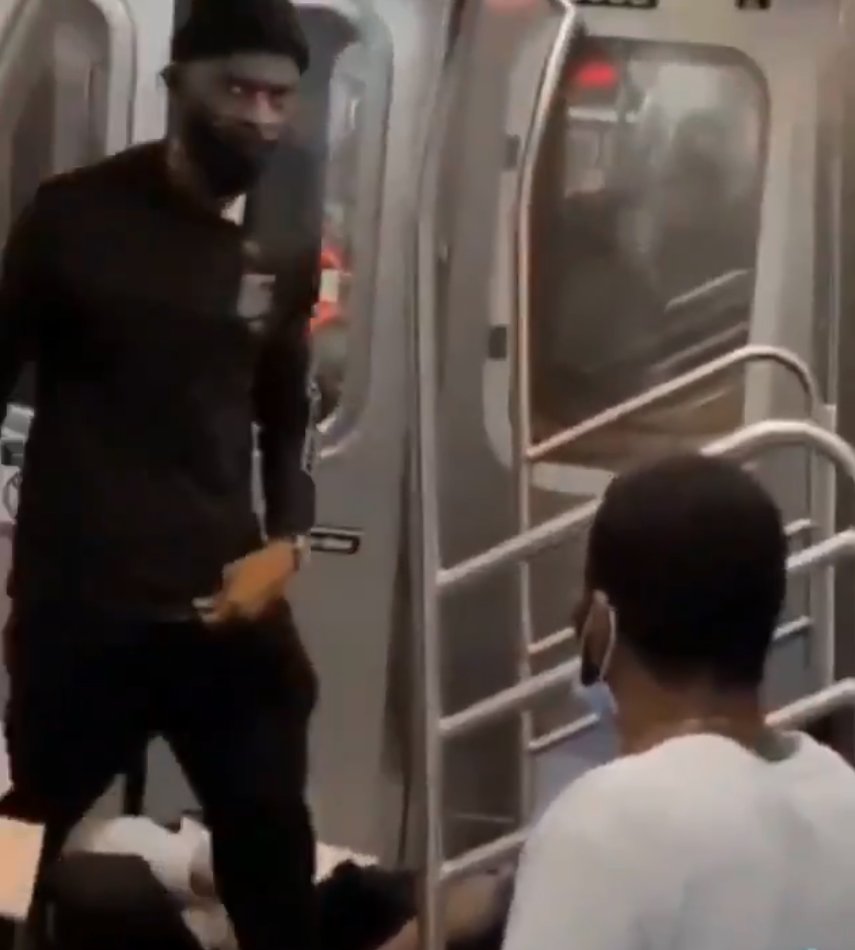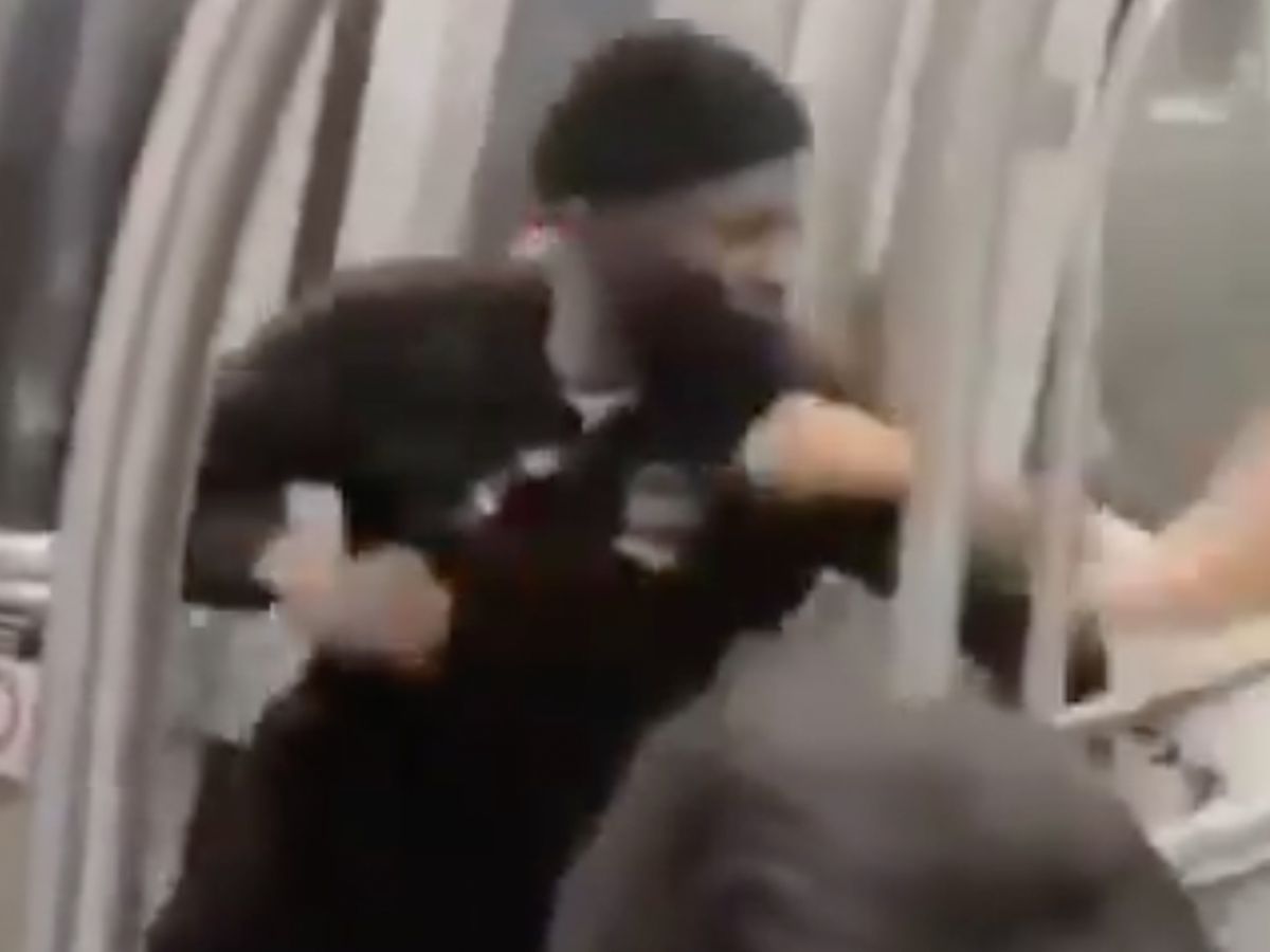 视频显示,在开往曼哈顿的地铁上一名戴着口罩的黑人试图抢劫一名亚裔男子,两人开始厮打。不久后黑人占据了上风,将亚裔男子打倒在椅子上,并反复殴打。受害者此时只能蜷曲身体保护自己。
