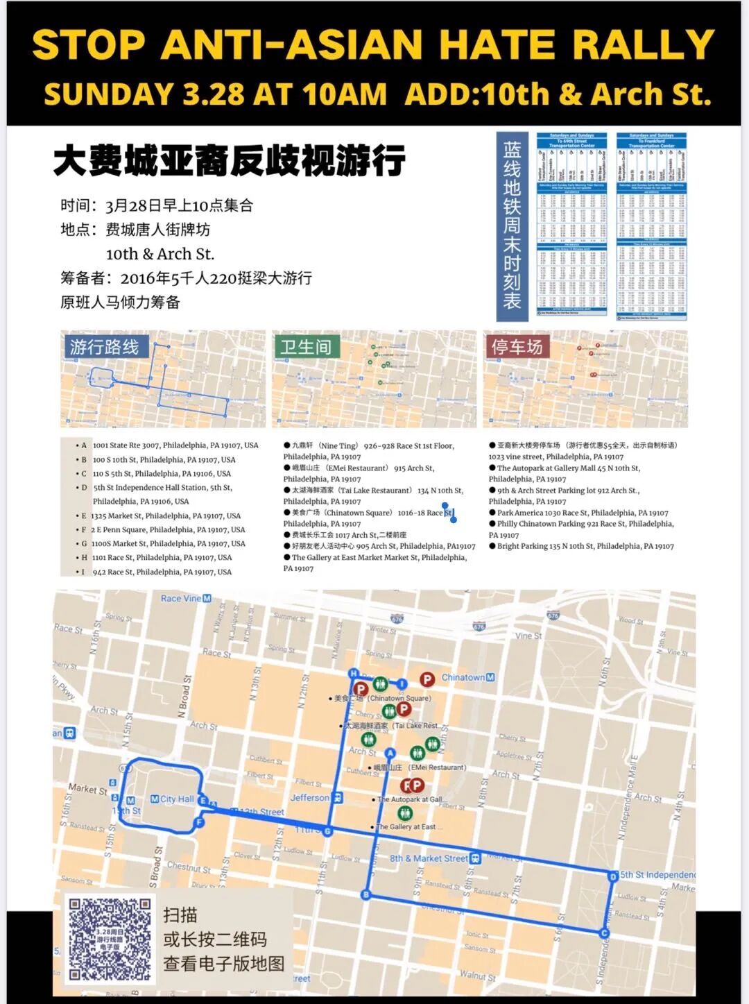 如果你住在美国东部费城周边地区,欢迎你加入我们,共同发声,为了亚裔的平等权利,为了得到我们应有的尊重,让我们站在一起,显示我们亚裔的团结一致和力量!