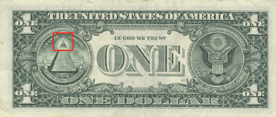(美国1美元纸币上的“全视之眼” 图自维基百科)