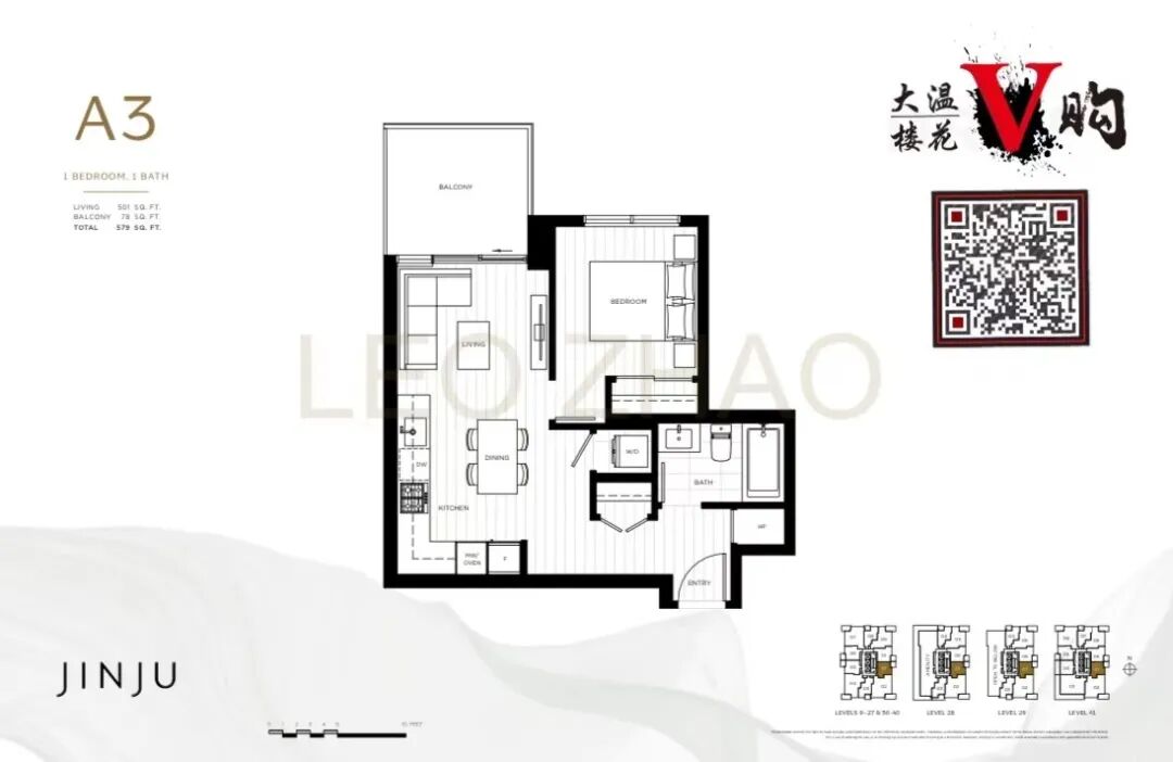 户型选择:387套1-3卧室公寓单位