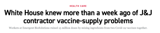 此外,据美国媒体Politico报道,拜登政府早在一个多星期之前就知道了1500万剂强生疫苗被污染的事,但白宫的口风严得跟花瓶一样,这么大的丑闻此前就一点风声都没有。