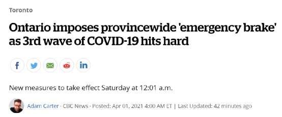 安大略省省长Doug Ford 4月1日在发布会上宣布,当地时间4月3日凌晨12:01开始,安省将再次“紧急制动”进入封城状态,目前暂定封城时间长度为4周。