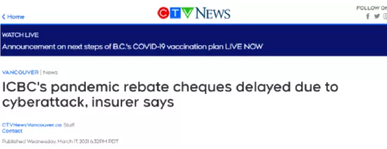 号称是全加拿大最大规模和数额的车保退款运动,在BC省可推进地并不顺利。根据ICBC3月17日发布的声明,该公司负责提供印刷和发行服务的第三方供应商被黑客攻破了网络,因此不得不把退款的时间往后延期。
