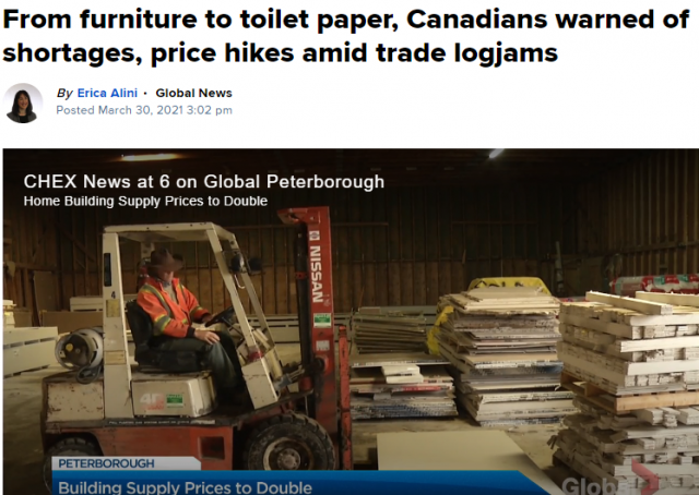 加拿大行业人士指出,虽然苏伊士运河已经恢复运输,但是与COVID-19大流行相关的全球贸易困境还没有结束,供应链中断可能很快就会打击加拿大的消费者,从家具到卫生纸,加拿大人可能会看到所有家居用品全面涨价。