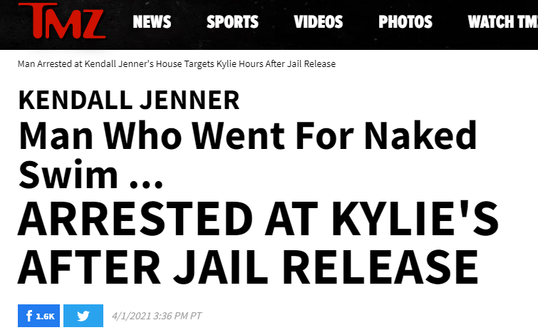 肯豆都搬家了,但这一切并没有结束,因为前几天“闯入+裸游”的男子被释放了,现在他又盯上了肯豆的妹妹、“金小妹”凯莉·詹娜(Kylie Jenner)……