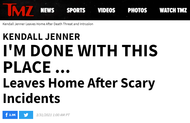 上周日凌晨2点左右,一名男子闯入肯豆在洛杉矶的住所,一边敲窗,一边大喊着她的名字。