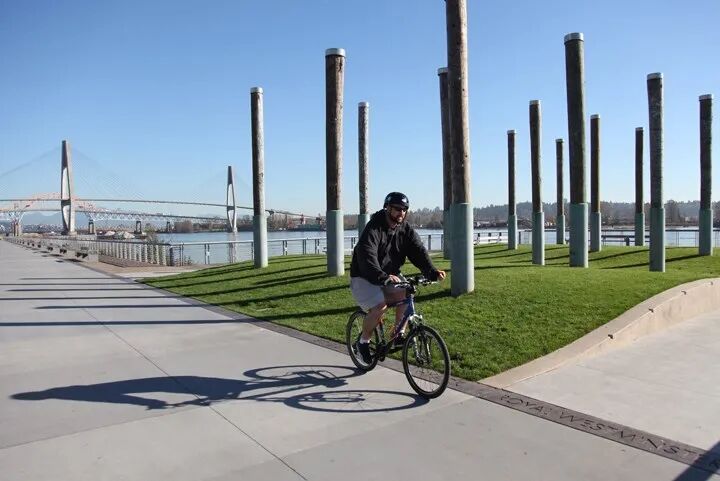 New Westminster Pier Park的Waterfront Esplanade Boardwalk步道全长2.5公里,而且都是铺装好的路面,放眼整个大温,都很难有能够匹敌的。
