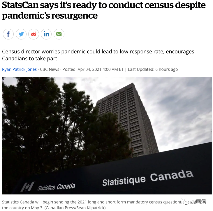 虽然加拿大目前严重,但是,每5年一次的人口普查将于5月11日举行,届时,每家每户都是收到一封邮件,所有人必须要填写,否则会被罚款高达$500加元。