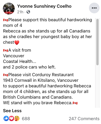 上周五,BC省就下令关闭所有餐厅堂食,但是位于温西Kitsilano的一家餐厅Corduroy Restaurant 却拒不执行,不但放任顾客不戴口罩在店内聚集狂欢,甚至把来执法的警察和卫生官赶出了门!现场视频看了真让人义愤填膺。
