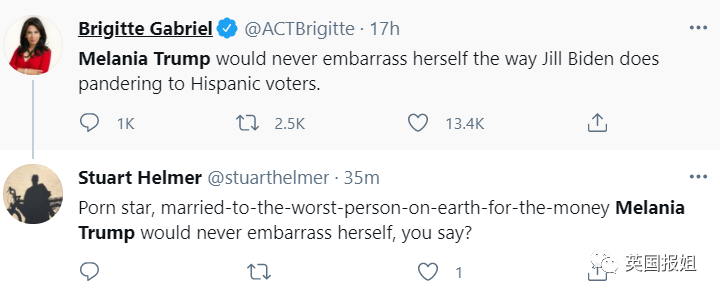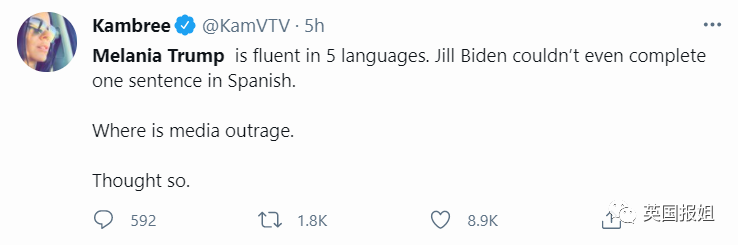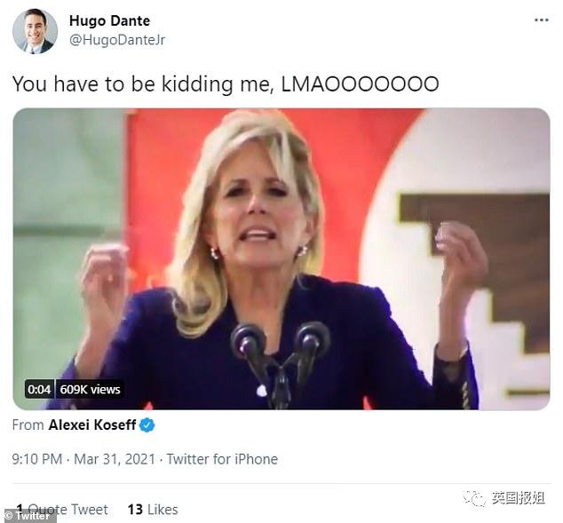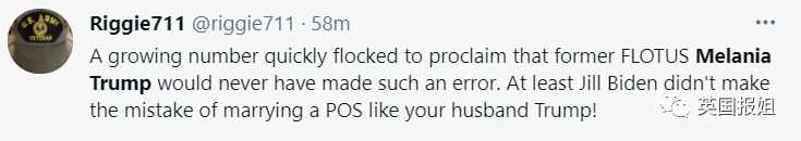 媒体一直给Jill的定位都是博士高材生,结果一开口翻车了。一瞬间全网的川粉,梅拉尼娅粉,保守派都兴高采烈普天同庆,在推特上狂嘲Jill是假文化人。