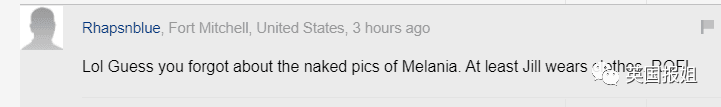 缺德网友回复:亲爱的,好歹Jill还穿了衣服呢!再次讽刺梅拉尼娅年轻时拍裸照。
