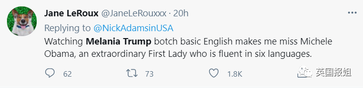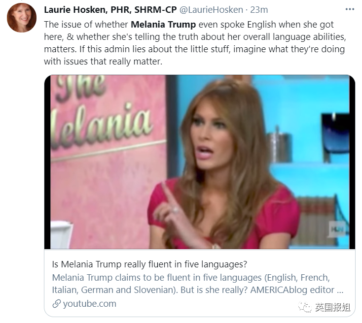 民主党支持者反击:梅拉尼娅是faker!她根本不会5种语言,都是川普买的通稿!她连英语都说不利索!