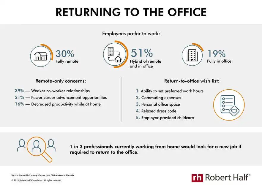 人力资源派遣公司Robert Half的研究发现,如果雇主强制要求员工回到工作岗位,约33%的员工会考虑直接离职。而愿意回到办公室的人则列出了一系列平稳过渡要求。