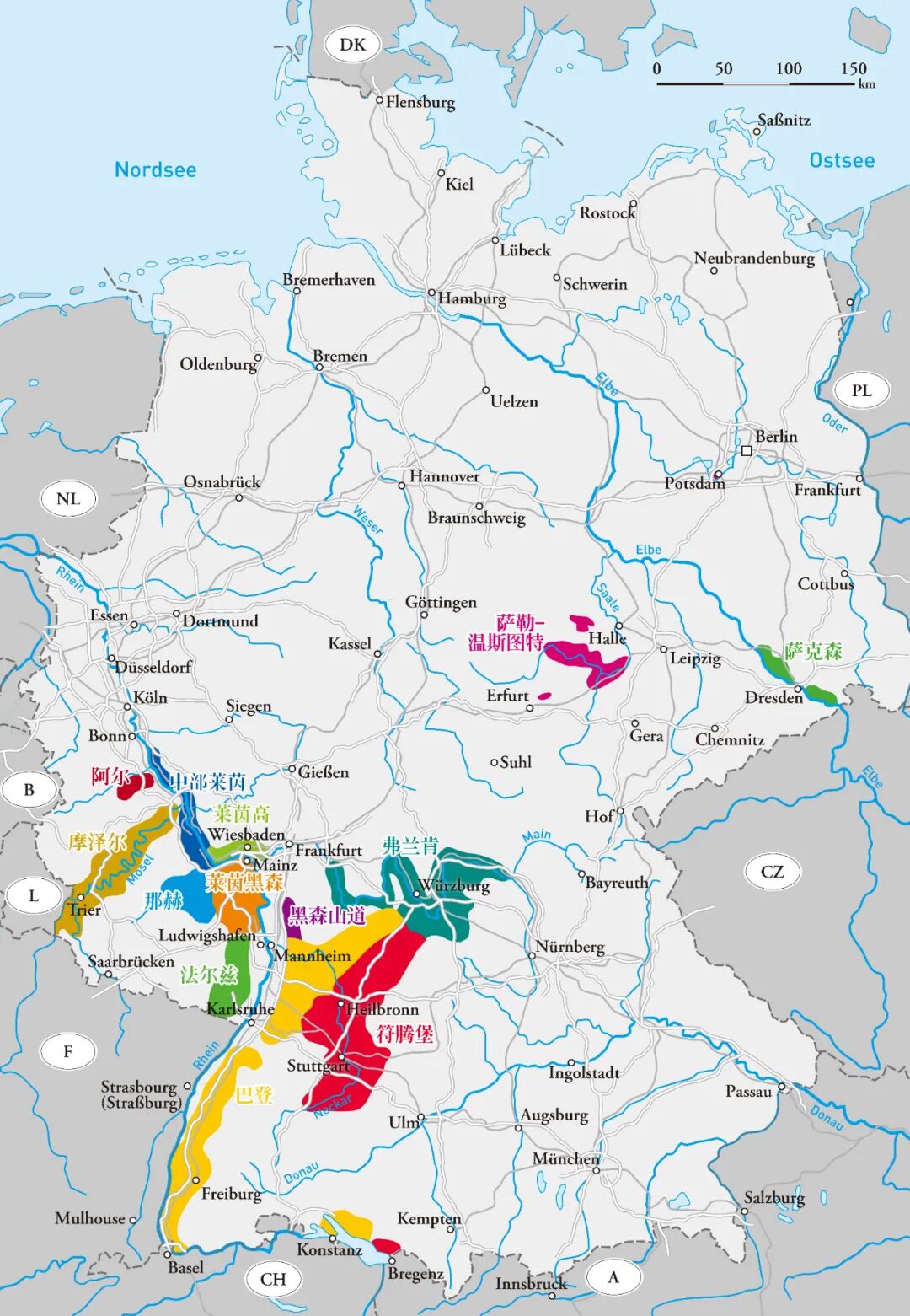 德国的 13 个葡萄酒产区几乎都种植黑皮诺,其中最著名的是阿尔(Ahr)、巴登(Baden)、弗兰肯(Franken)、法尔兹(Pfalz)和符腾堡(Wurttemberg)。巴登的黑皮诺种植面积最大,不过在国际上最有声誉的还要数阿尔。