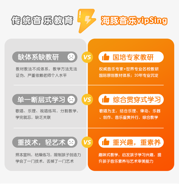 海豚音乐音乐课程区别于传统模式下的音乐课,注重孩子的启发式、综合性的学习,重视能力培养,以歌唱为主体构建少⼉⾳乐综合能⼒成⻓体系。