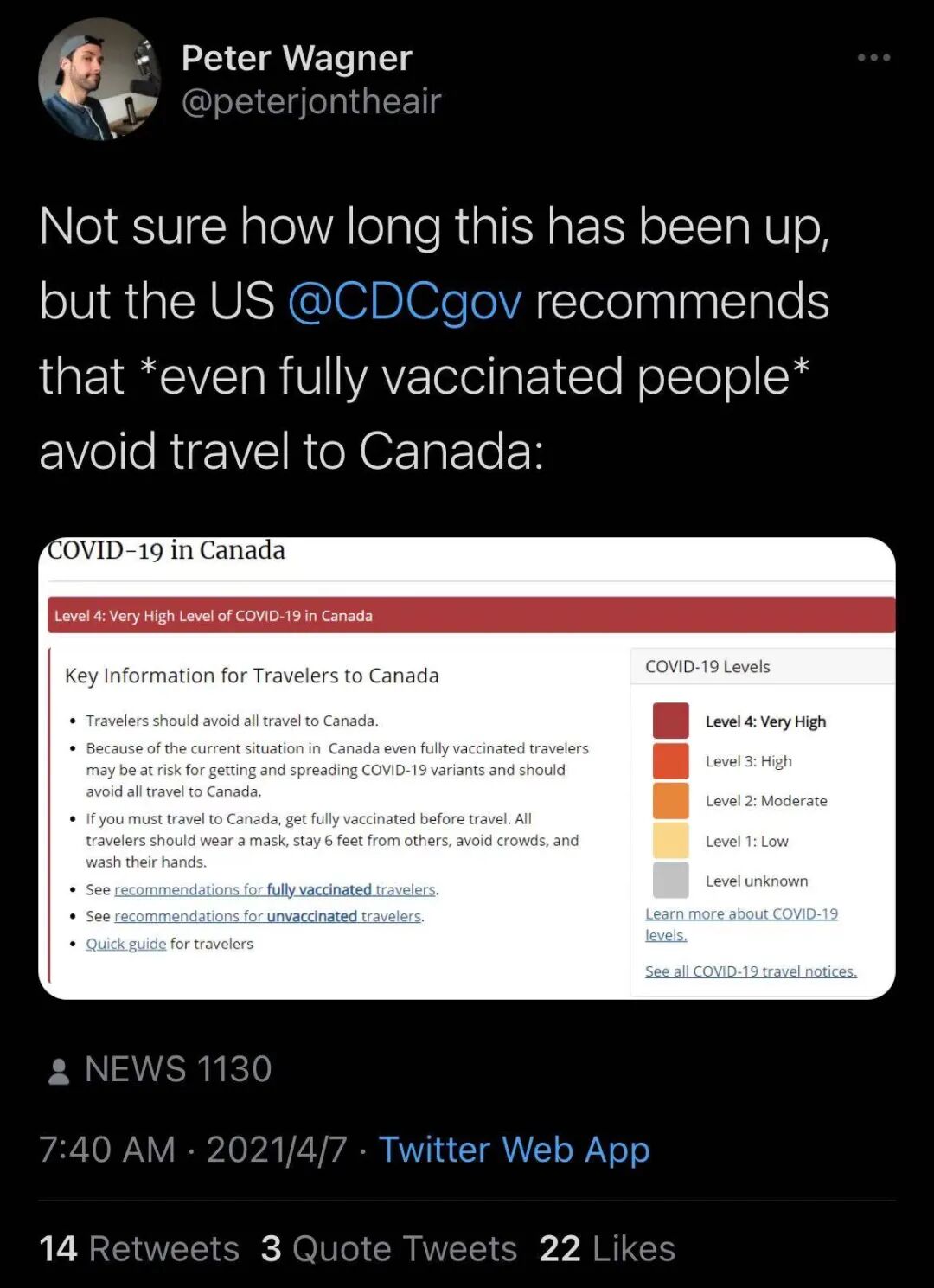 希望民众避免到加拿大旅行,