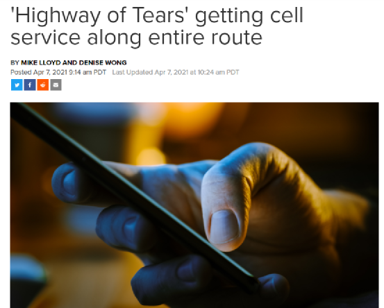 4月7日NES1130 发布了一则新闻,称BC省北部16号公路附近区域终于要实现手机信号全覆盖啦。按理说,这种事没什么新闻价值,可是它偏偏就吸引了很多人的关注,原因就在于这个路段就是臭名昭著的“泪之公路”(Highway of Tears),上世纪70年代至今,40多名女性在这个路段失踪或被杀害,无数亲人朋友的泪水已经浸透了这条恐怖的“死亡之路”。