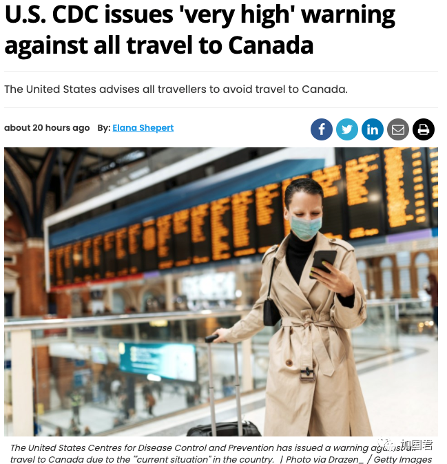 加拿大疫情太烂,现在连美国都嫌弃了!CDC警告美国国民不要到加拿大旅行!甚至打完疫苗也不要去,称加拿大变种太猛,有感染风险。