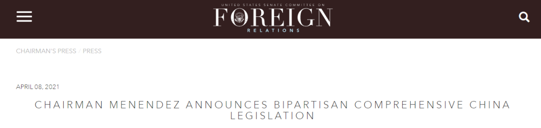 就连提案人对议案的针对性也毫不讳言。在梅嫩德斯以参议院外交委员会主席身份发布的声明中,标题就写着“全面的中国立法”。