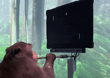 训练一段时间之后,就算科学家把手柄拿走,猴子看到同样的游戏,大脑里还会出现相似的活动。所以,只要把芯片捕捉到的信号,用翻译规则翻成操作指令,猴子依然可以照常游玩。