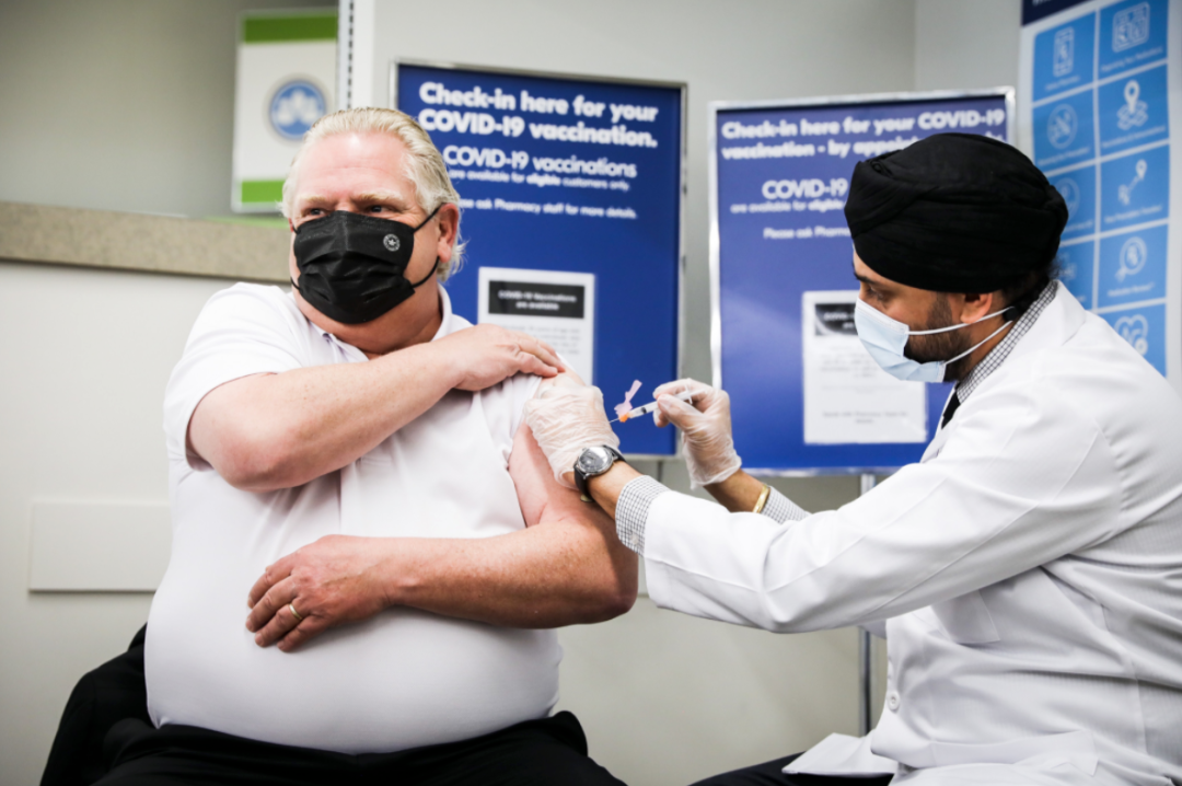 与此同时,省长福特今天宣布,今天早上10点在镜头面前直播接受他的第一剂阿斯利康COVID-19疫苗。