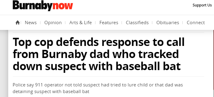 Burnaby皇家骑警已经审查了911电话和Supt。负责该支队的官员Graham de la Gorgendiere表示,Mike没有报告嫌疑人试图引诱一个孩子吸毒。