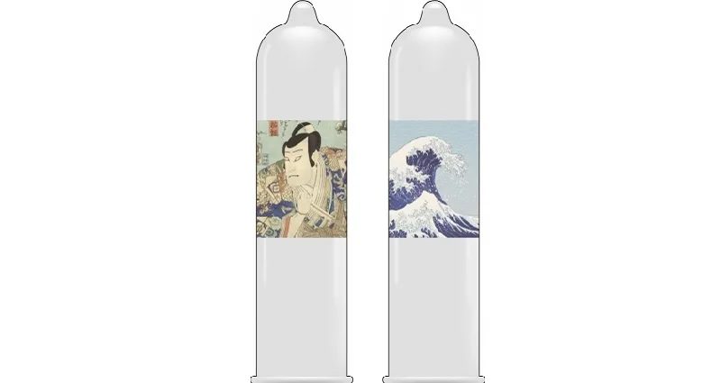 尤其是冈本公司,还特意打造了一款浮世绘避孕套,将避孕套设计与日本传统文化相结合,每个避孕套都印上了日本传统浮世绘的图案。当避孕套被完全打开后,完整的图案就会展现出来。