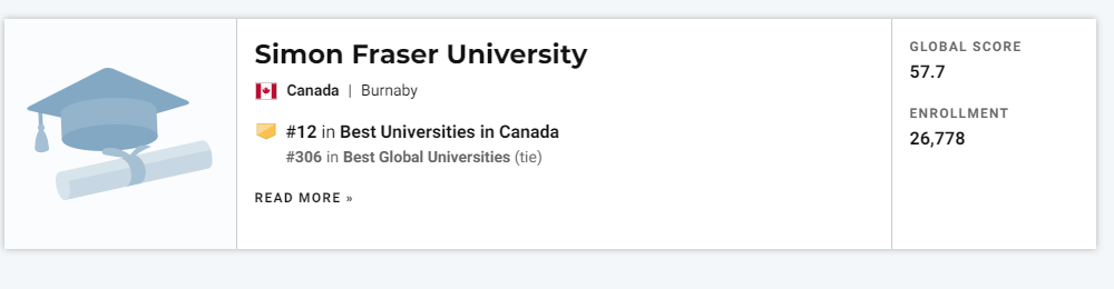 大温地区另一所高校SFU排名306名。