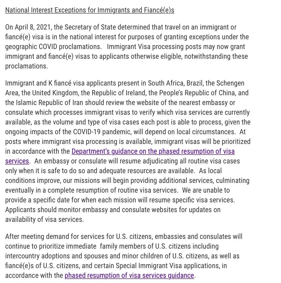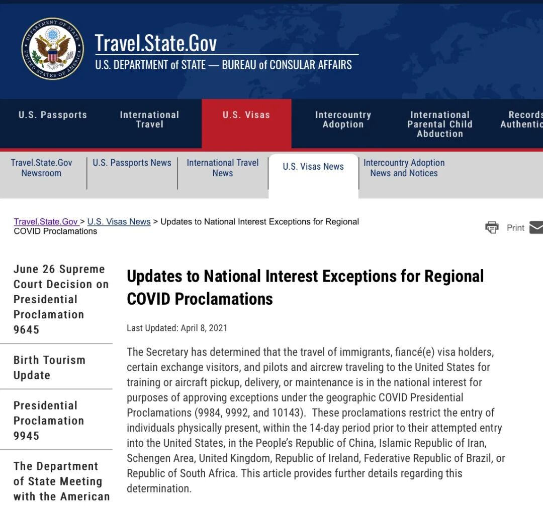 这些类别的旅客如果希望访问美国并持有相应类别的有效签证,或者正在申请签证,并且认为他们有资格享受国家利益豁免的例外待遇,应在旅行前联系最近的美国大使馆或领事馆。