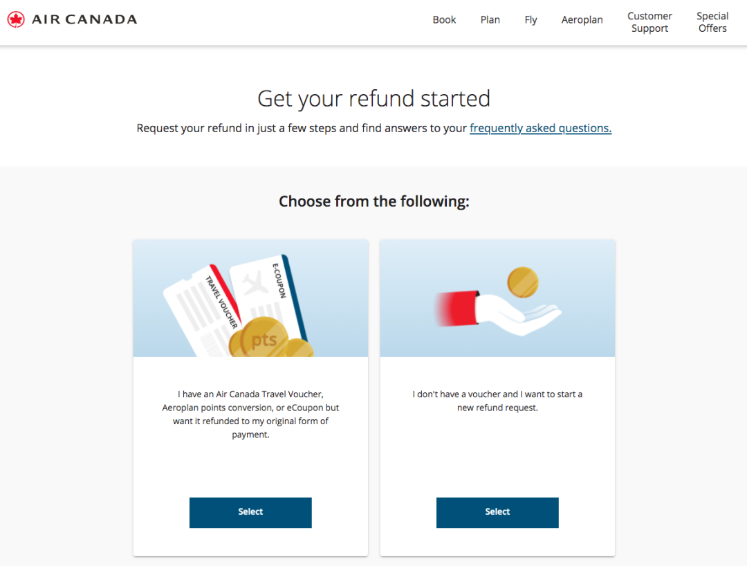 加航此次决定,已经兑换旅行券(voucher)的乘客可以到网站上自己办理退款(输入旅行兑换券号码),换成aeroplan积分或者没有退款的乘客可以自行网上申请或请代理协助。
